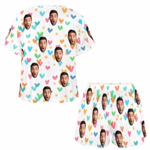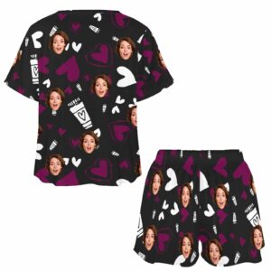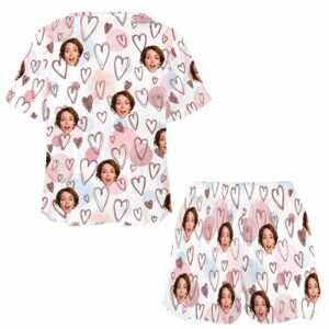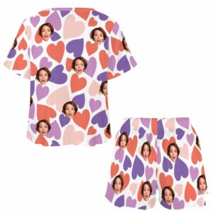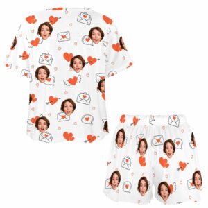 Personalized womens Valentine Short 2 Pieces PJ Sets with Face Custom Photo round neck Sleepwear for GF Wife Mom gift