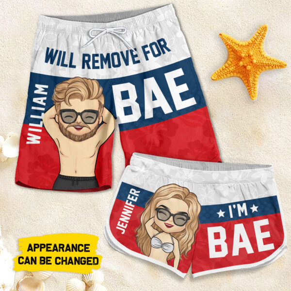 Classic Touch Beach Short Will Remove For Bae – Personalized Couple Beach Shorts – Gift For Couples, Husband Wife Set of 2