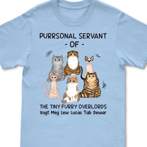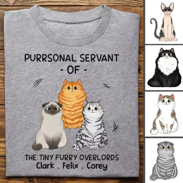 Classic Touch T-shirt Cat Lovers – Purrsonal Servant Of Cartoon Sitting Cats – Personalized Unisex T-shirt