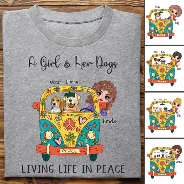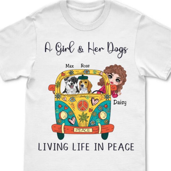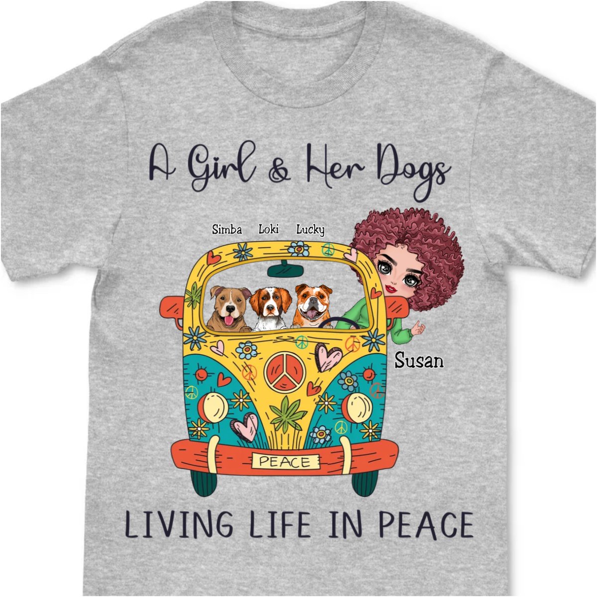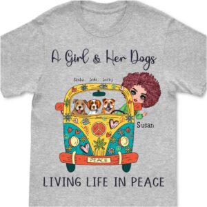 Classic Touch T-shirt Dog Lover – A Girl And Her Dogs Living Life In Peace – Personalized Unisex T-Shirt Set of 2