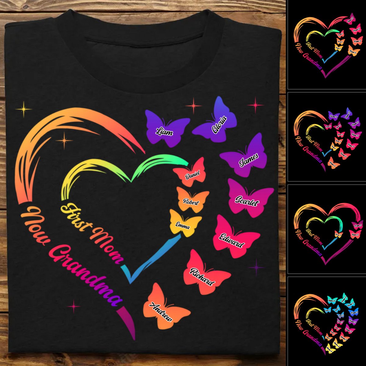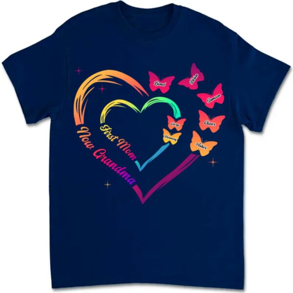 Classic Touch T-shirt Grandma – First Mom Now Grandma With Butterfly – Personalized T-Shirt Set of 4