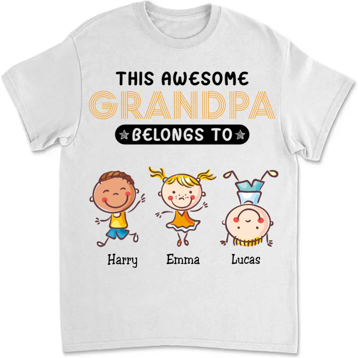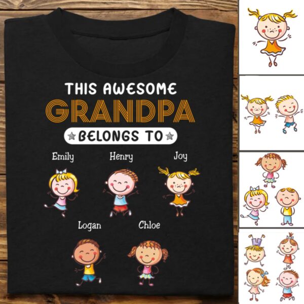 Classic Touch T-shirt Grandpa – This Grandpa Belongs To – Personalized Unisex T-Shirt Set of 2