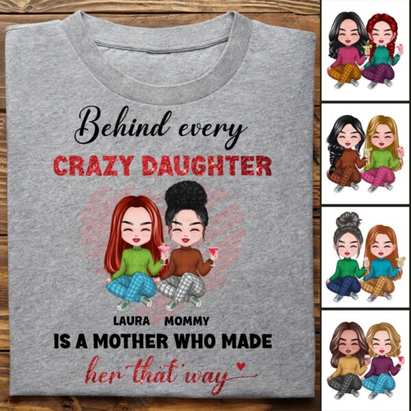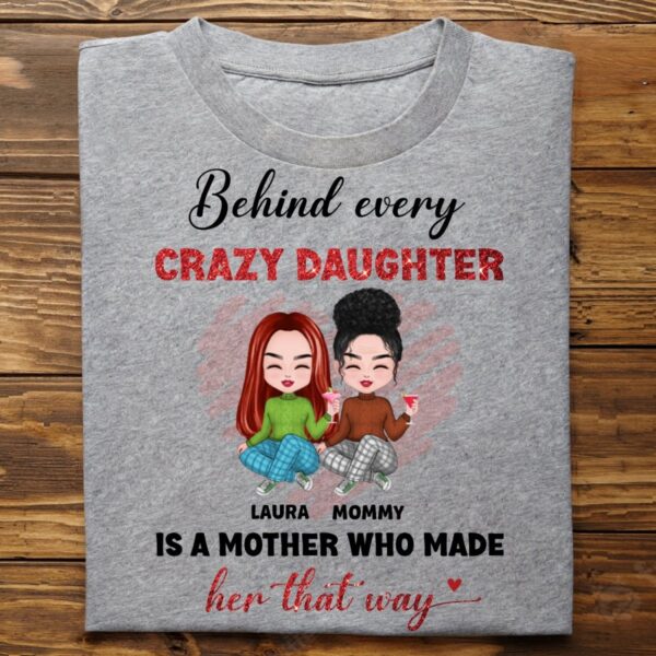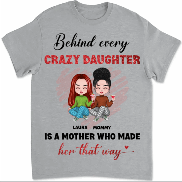 Classic Touch T-shirt Mother – Behind Every Crazy Daughter Is A Mother – Personalized Unisex T-shirt