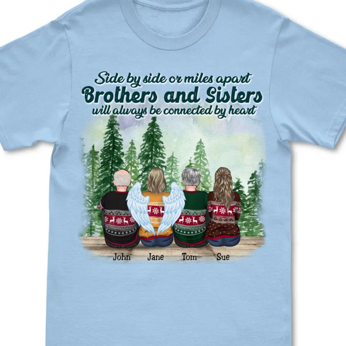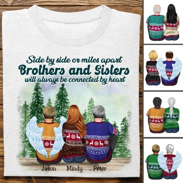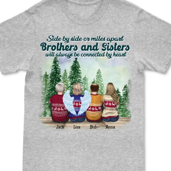 Classic Touch T-shirt Sides by Sides or Miles Apart Brothers & Sisters Will Always Be Connected by Heart Personalized Unisex T-shirt (Lake) Set of 4