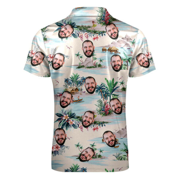 Custom Face Hawaiian Style Polo Shirt with Zipper Men’s Polo Shirt for Boyfriend or Husband