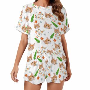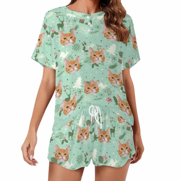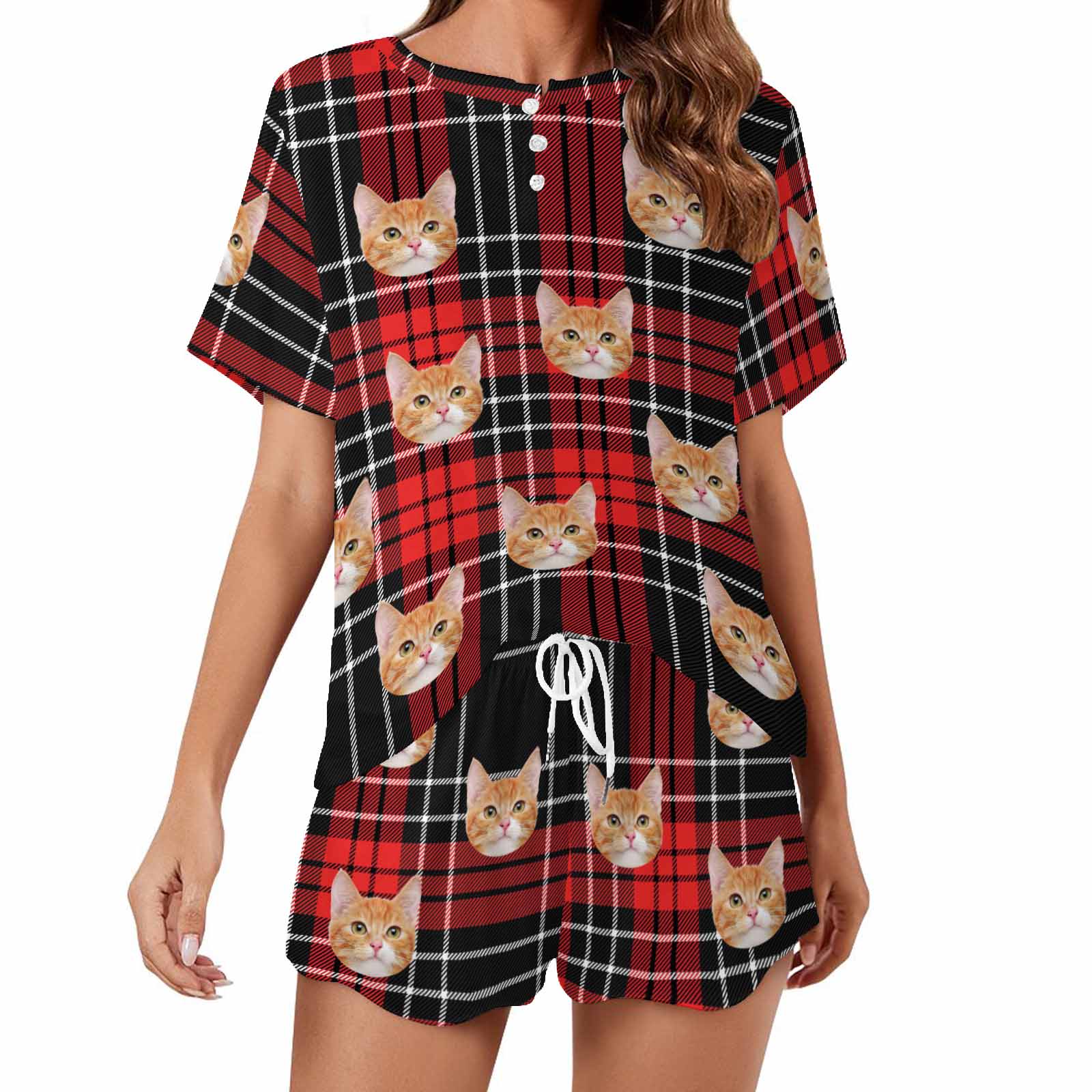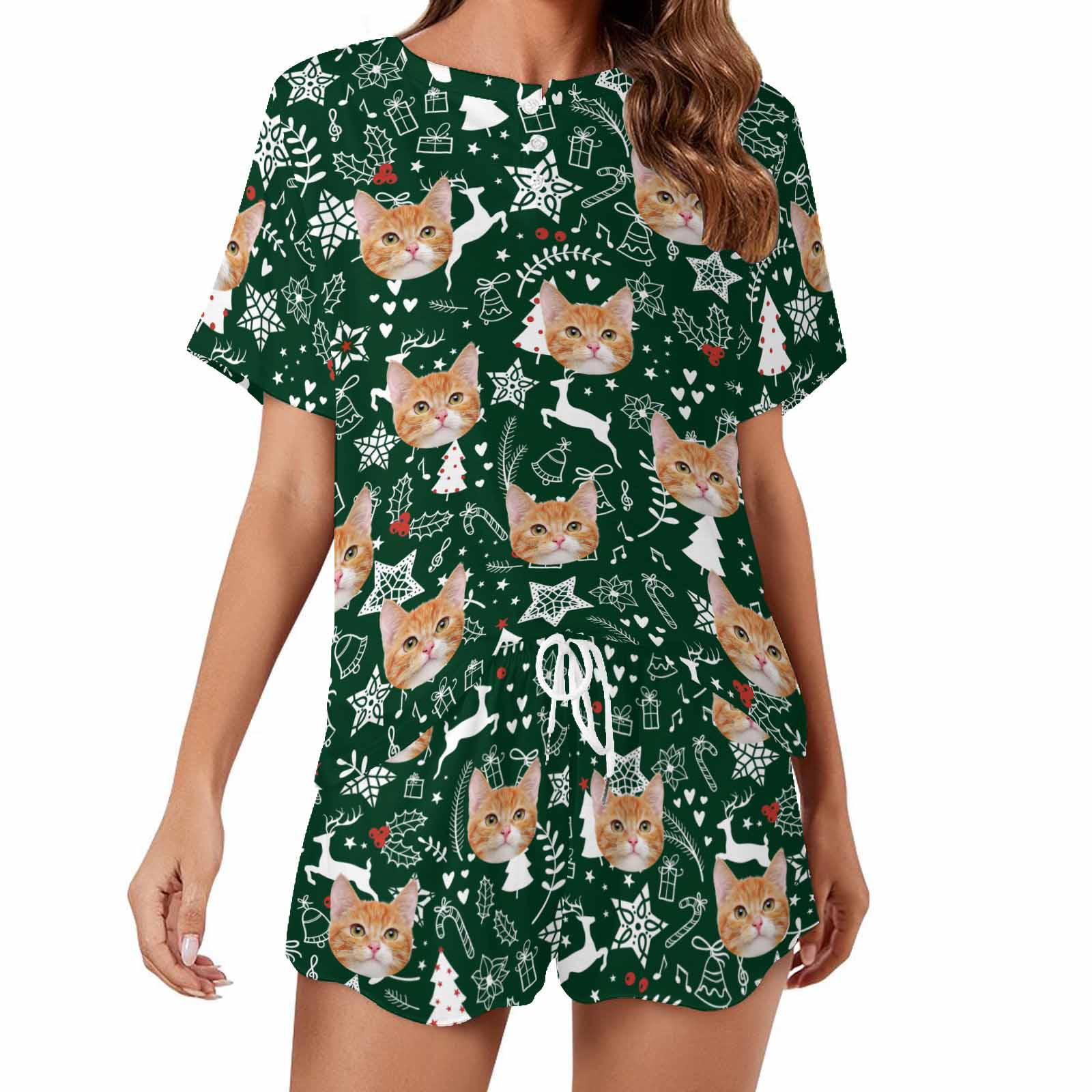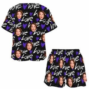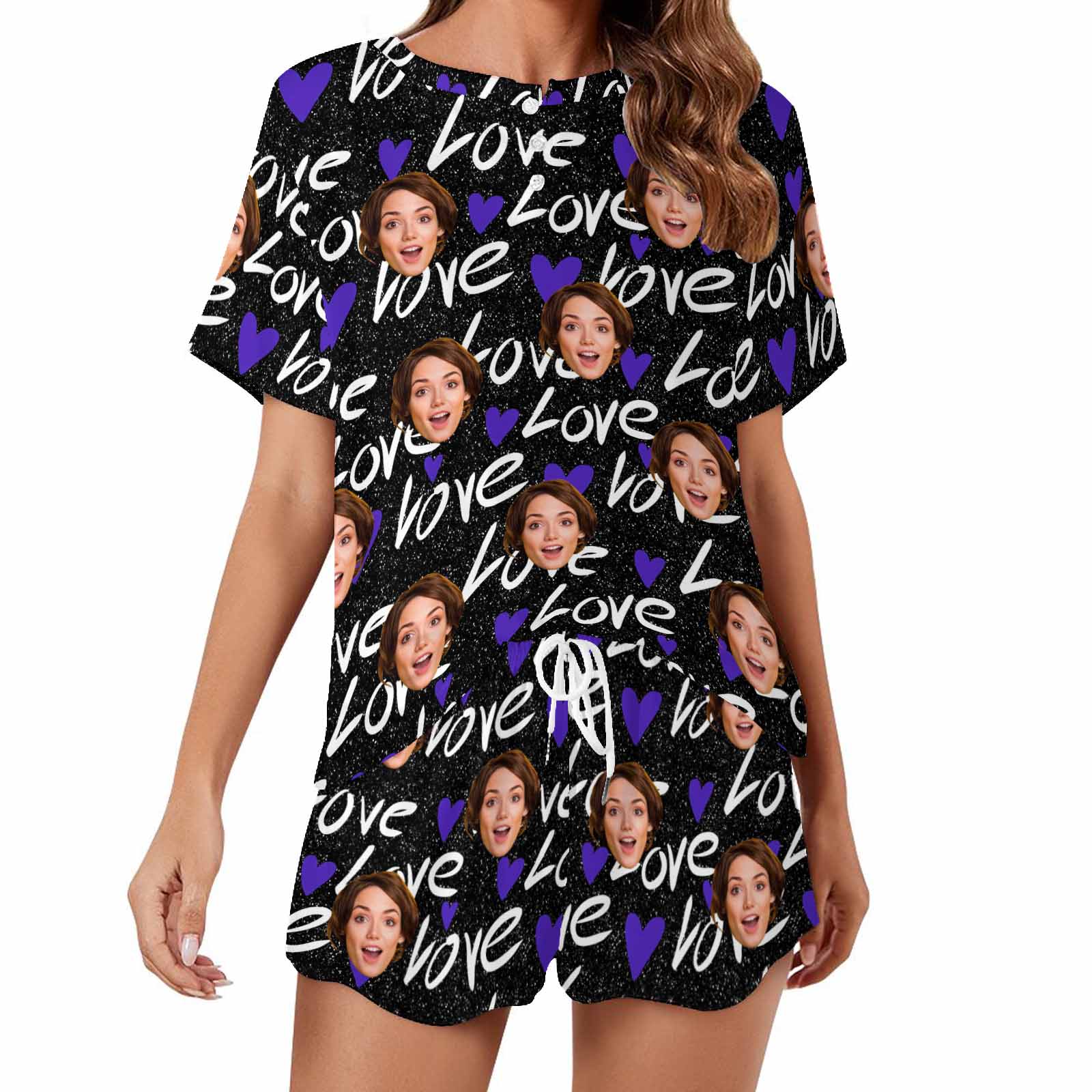 Custom Womens Short Pajama Set With Face Personalized Photo Short Nightwear Loungewear for GF Wife Mom valentine Gift