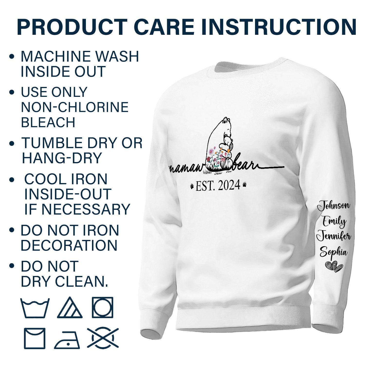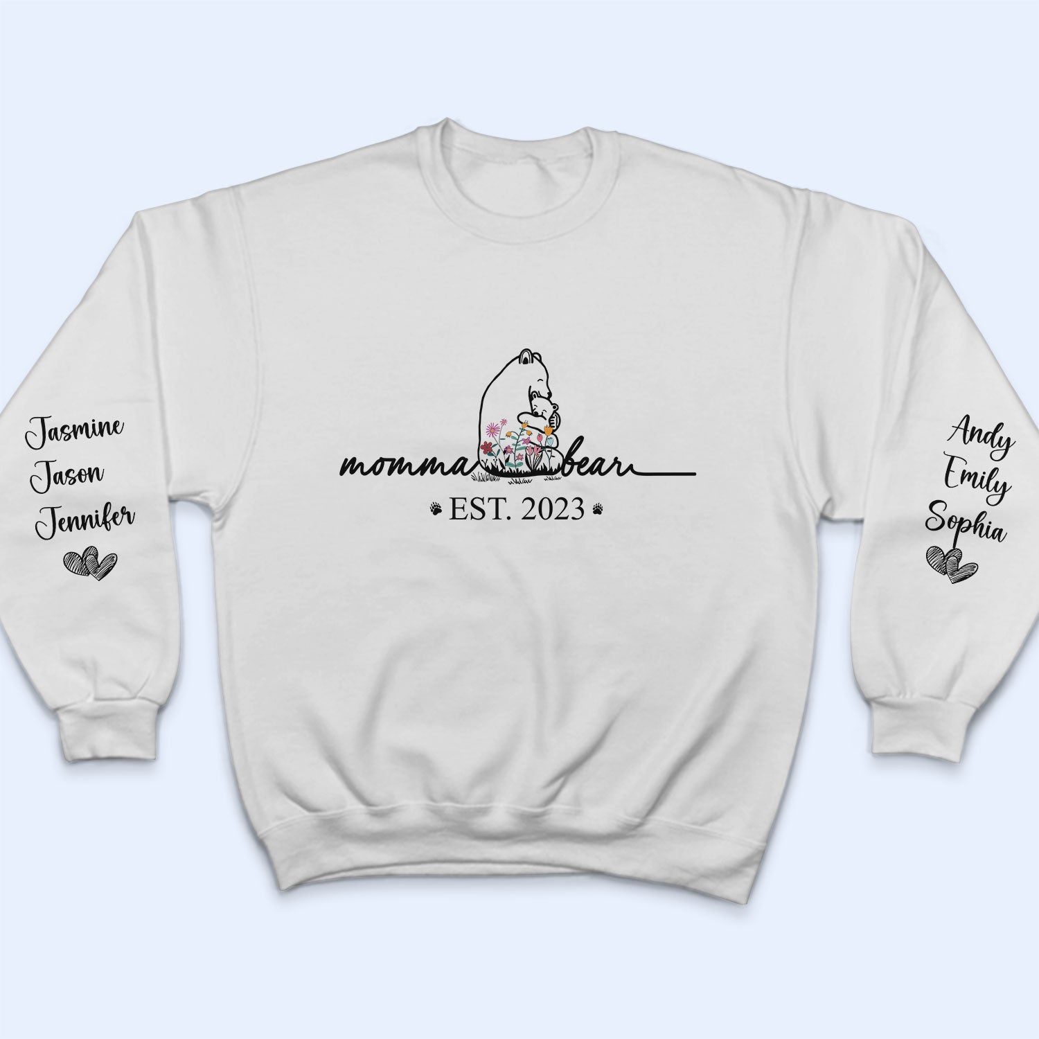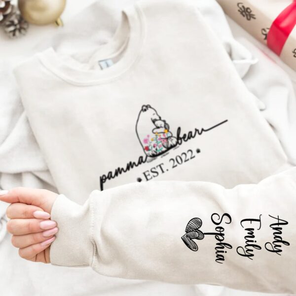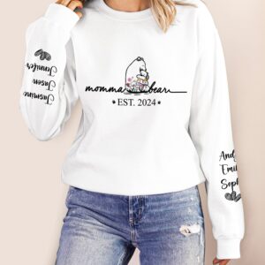 Dynamic Hue Sweatshirt Mama Bear Floral Style – Birthday, Loving Gift For Mom, Mother, Grandma, Grandmother – Personalized Unisex Sweatshirt With Design On Sleeve Set of 3