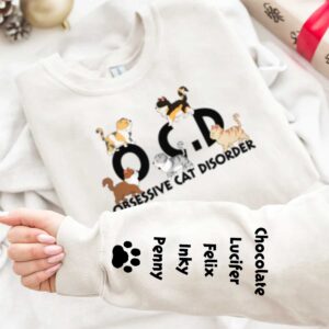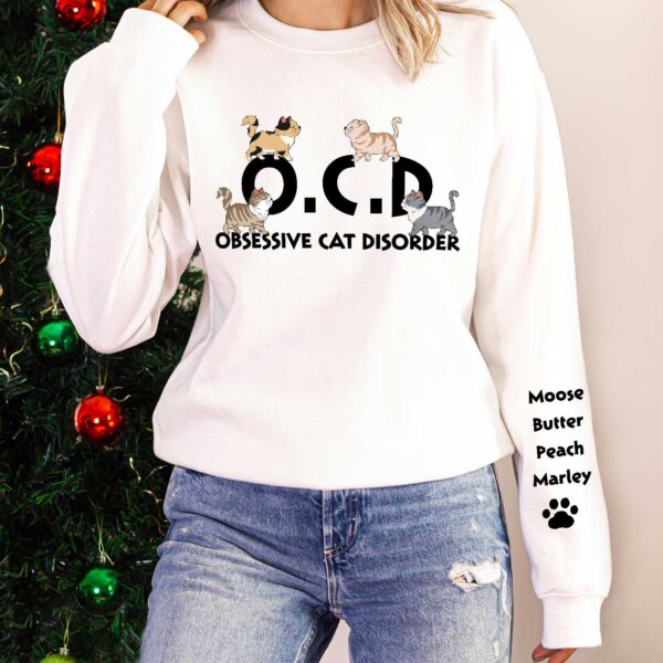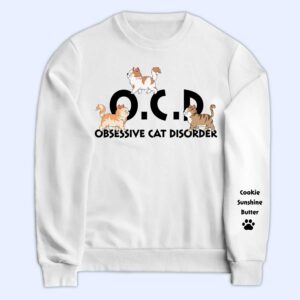 Dynamic Hue Sweatshirt Obsessive Cat Disorder – Gift For Cat Lovers, Cat Mom, Cat Dad – Personalized Sweatshirt With Sleeve Imprint Set of 10
