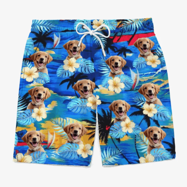 Lively Design Beach Short Custom Photo Tropical Hawaiian Aloha Men Beach Shorts – Personalized Summer Vacation And Travel Gifts For Family, Dog Cat Lovers – Life Is Better With Sandy Paws