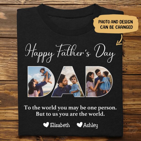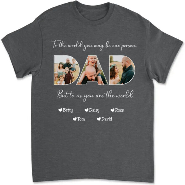 Lively Design T-shirt Father – To The World You May Be One Person Dad, But To Me You Are The World – Personalized Unisex T-shirt
