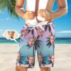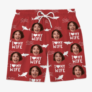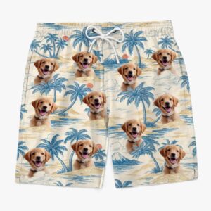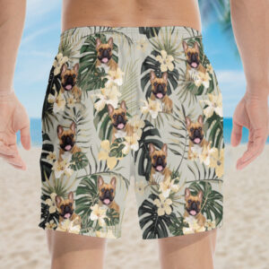 Men’s Custom Face Beach Trunks Photo Shorts Beach Shorts Men’s Photo Swim Trunks – Flamingo And Leaves