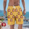 Put any face on the beach shorts,No matter where you go, you are the one who is unique. Men's Custom Heart Face Elastic Beach Short Pants