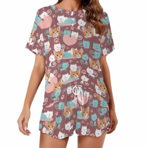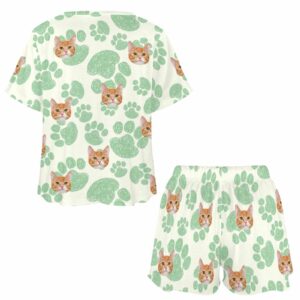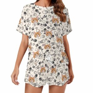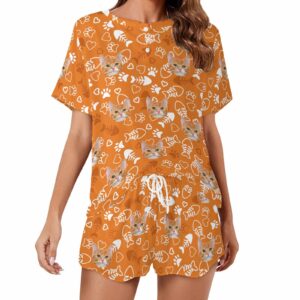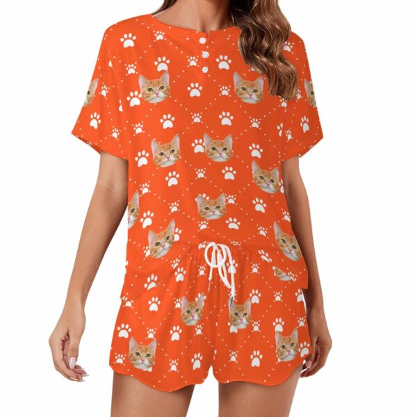 Personalized Pet Face 2 Pieces PJ Sets for women Custom Photo Valentine Short round neck Sleepwear for Mom GF Wife gift
