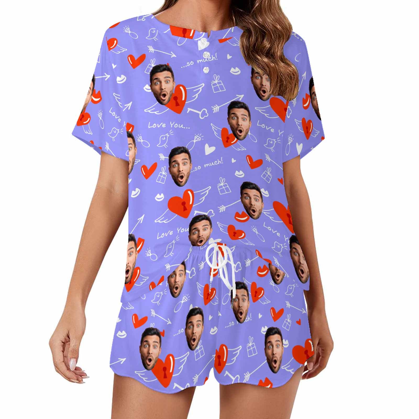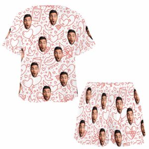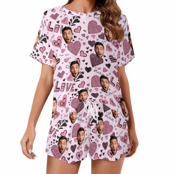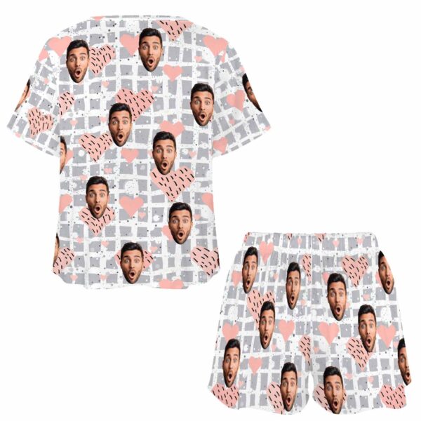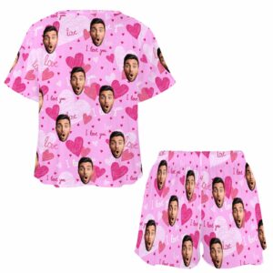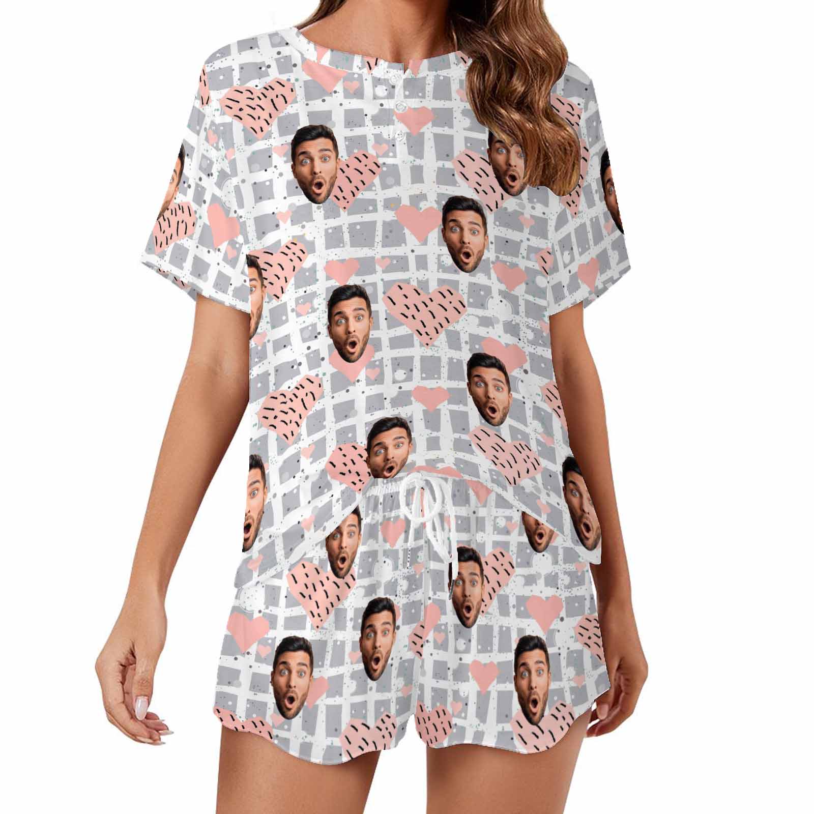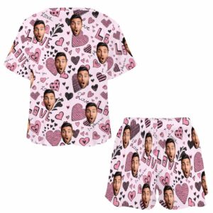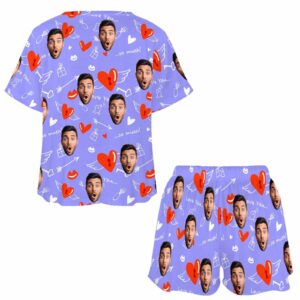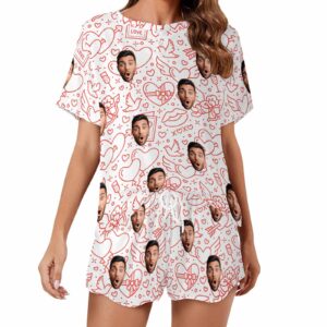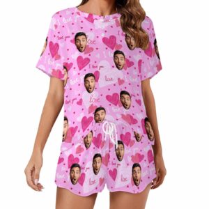 Personalized Short round neck Pajamas Set Photo for women Custom Sleepwear with Face for GF Wife Mom gift for Valentine