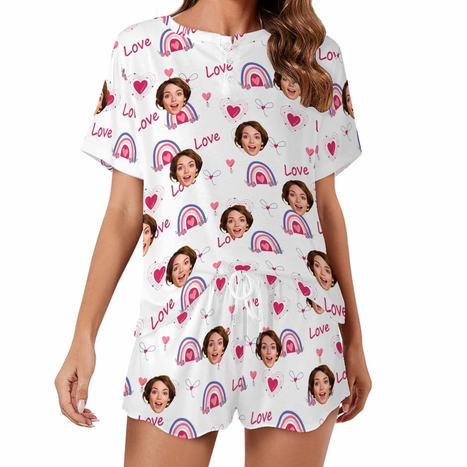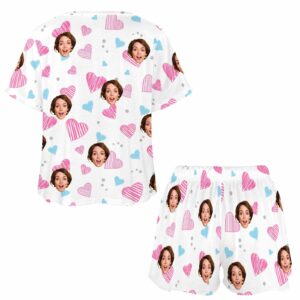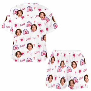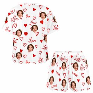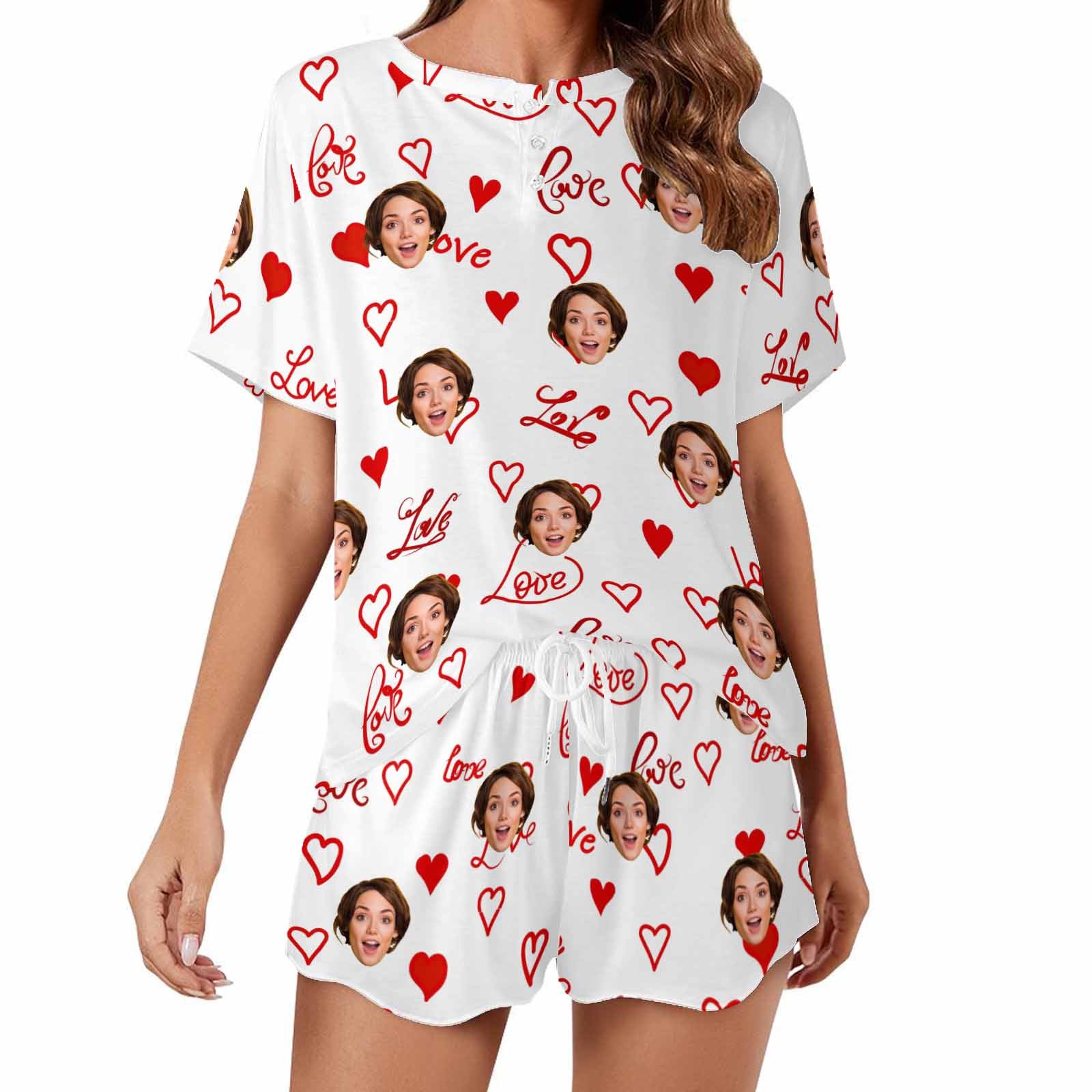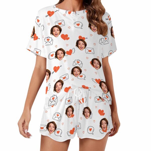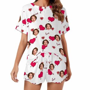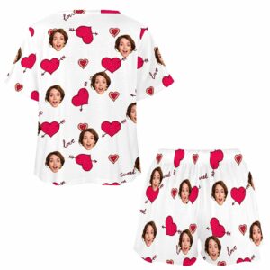 Personalized womens 2 Pieces PJ Sets with Face Custom Photo Valentine Short round neck Sleepwear for GF Wife Mom gifts