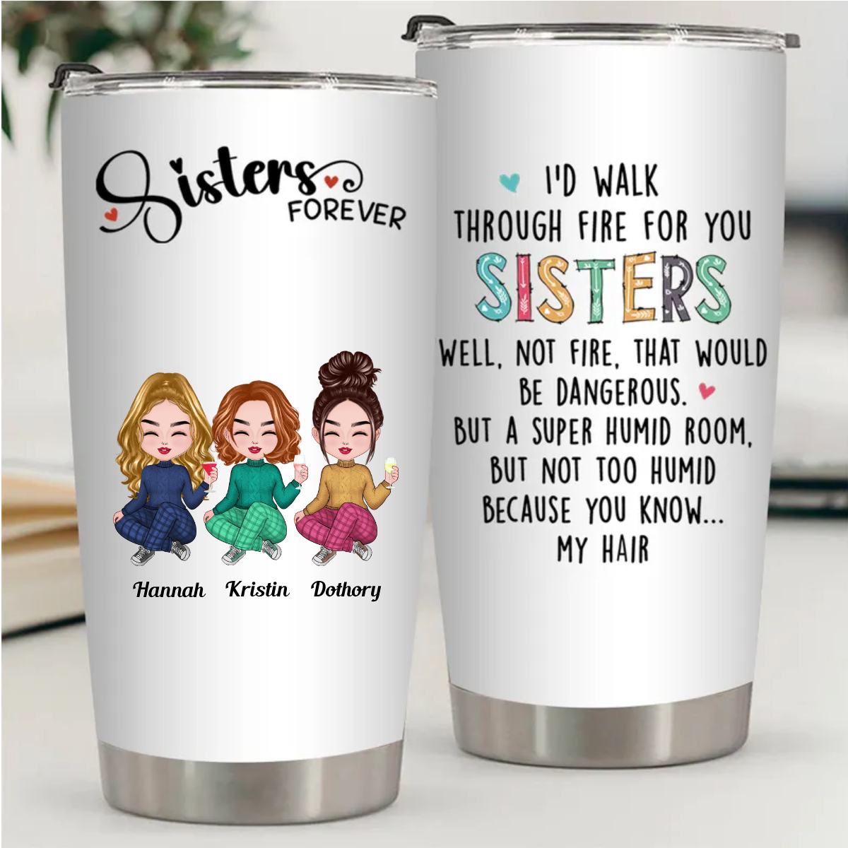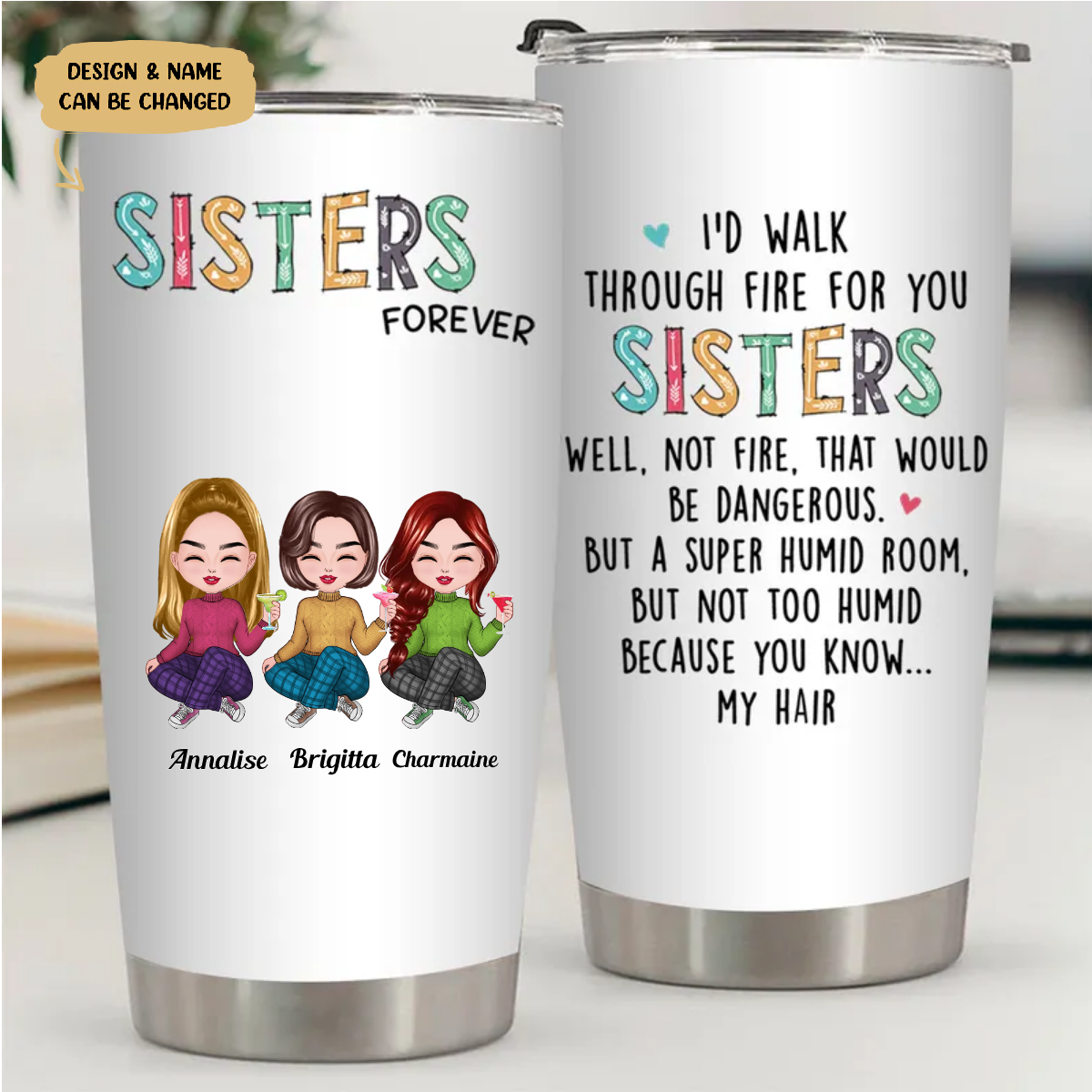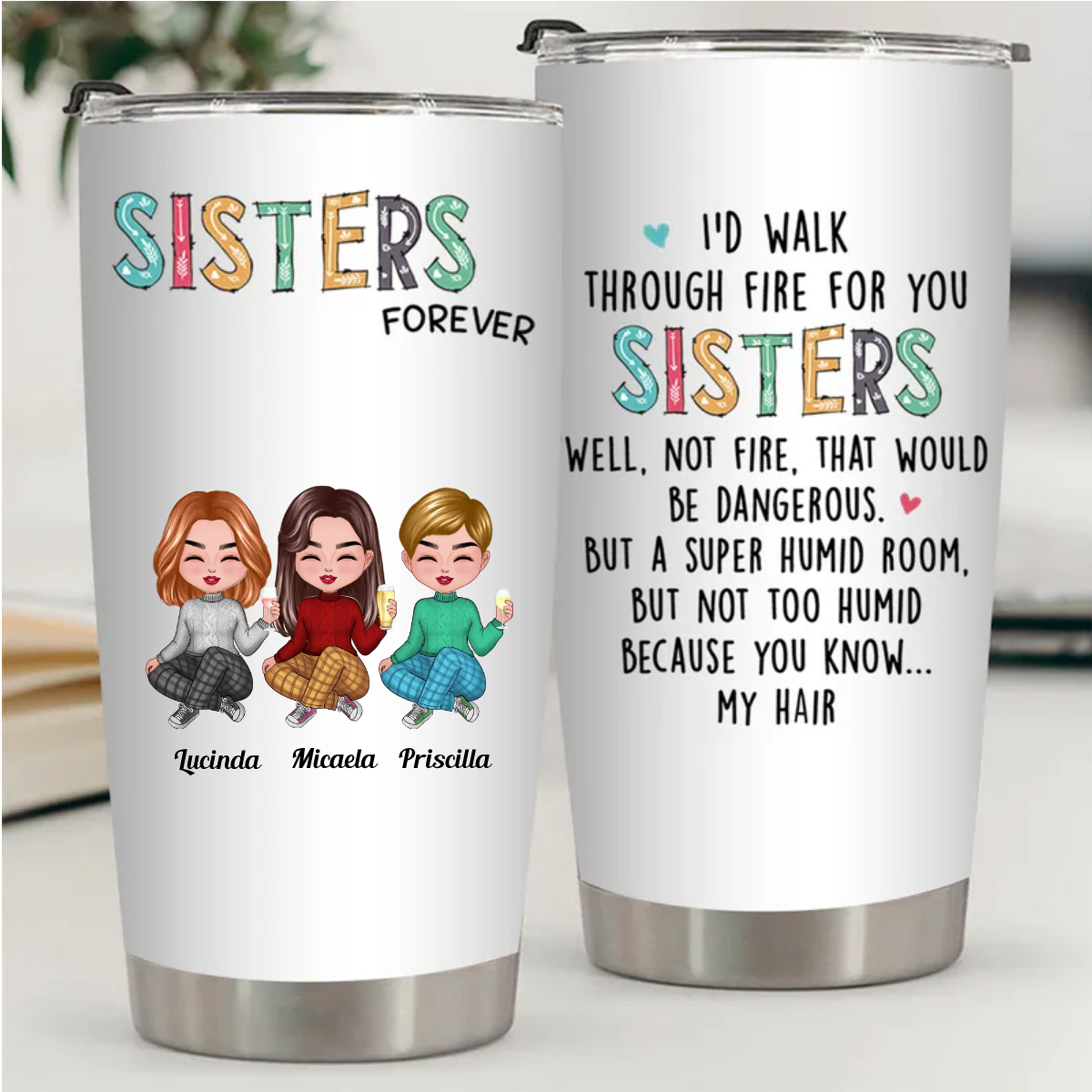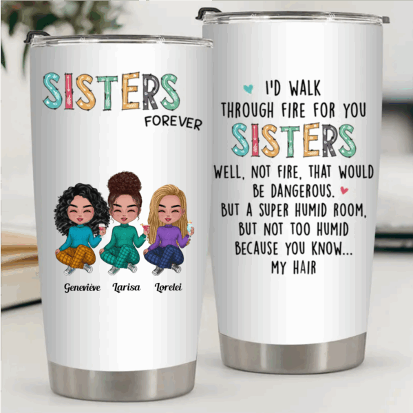 Sisters – I’d Walk Through Fire For You Sisters – Personalized Tumbler