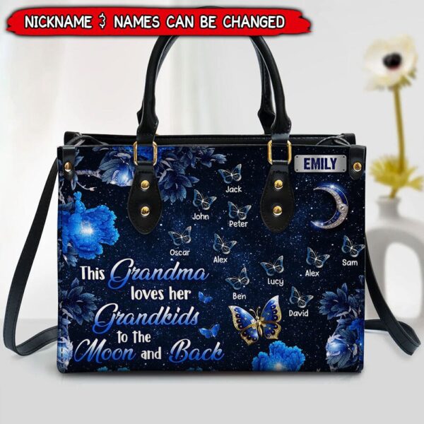 This Grandma Love Her Grandkids To The Moon & Back Personalized Mommy, Nana, Grandma, Auntie Leath Handbag NVL21JUL22TP2