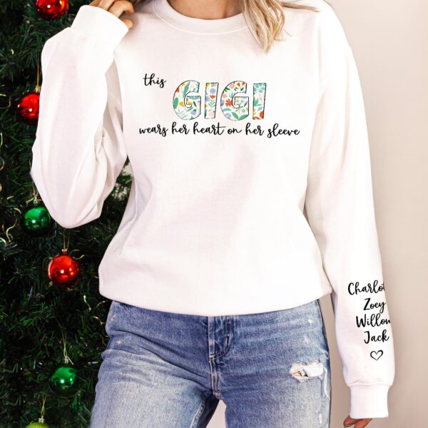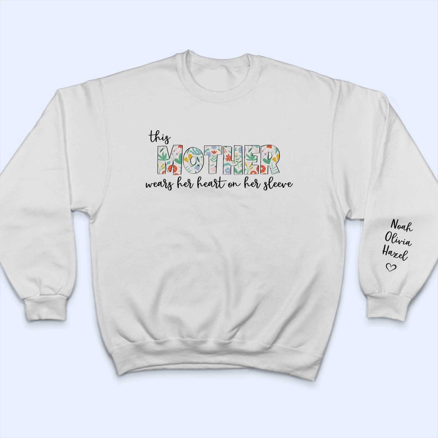 Vacation Vibe Sweatshirt This Mama Wears Her Heart On Her Sleeve – Birthday, Loving Gift For Mom, Mother, Grandma, Grandmother – Personalized Sweatshirt With Sleeve Imprint Set of 2